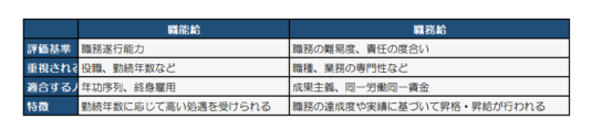 職務給では「職種や業務の専門性」を重視するため、「成果主義」や「同一労働同一賃金」といった制度に適応しやすいと考えられています。