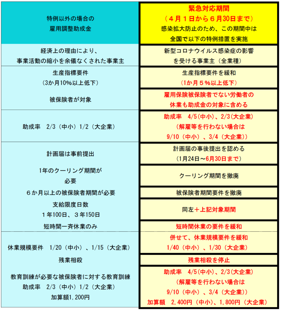 今月は、新型コロナウイルスの影響による休業や時短営業等に対する雇用調整助成金につきまして、緊急対応期間(令和2年4月1日~6月30 日)の最新の取り扱いが決定しましたのでご紹介いたします。
