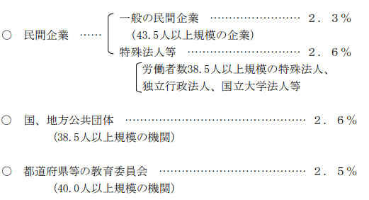 民間企業に課された雇用率が最も低く、国や地方公共団体などの公的機関が高くなっていますが、今回の引き上げは民間企業だけでなく、公的機関も同様に行われます。