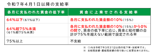 2025年4月1日から「雇用保険法等の一部を改正する法律」(令和2年法律第14号)の施行により、高年齢雇用継続給付の支給率が変わります。